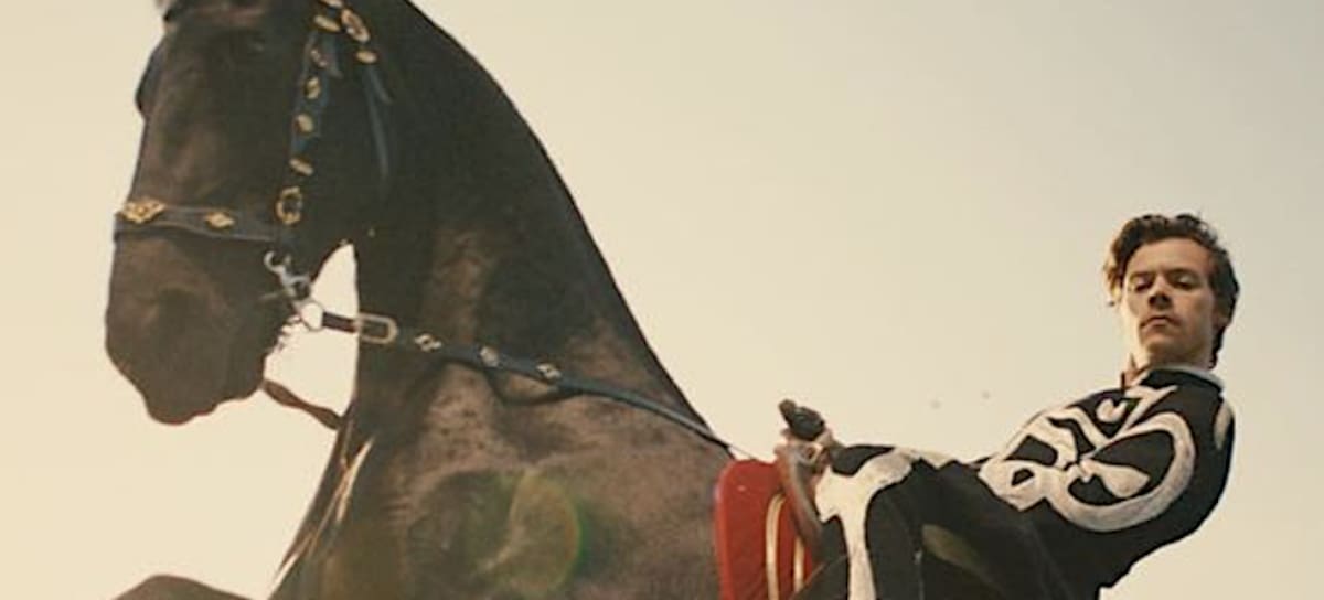 In the Tanu Muino directed version, Harry walks through a circus, meeting all its characters, such as acrobats and clowns, while he weights lift, rides a horse and even tries his tightrope-walking skills. He also flies through the sky, making us have another déjà vu with his music video «Sign of the Times,» but this time dressed as a circus-themed yellow bird after being being shot out of a giant cannon. Which should’ve been blue like the song lyrics ‘If I was a bluebird, I would fly to you’.