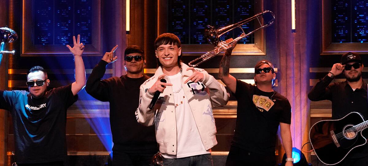 THE TONIGHT SHOW STARRING JIMMY FALLON -- Episode 1842 -- Pictured: Musical guest Peso Pluma performs on Friday, April 28, 2023 -- (Photo by: Rosalind O'Connor/NBC via Getty Images)(WordPress)