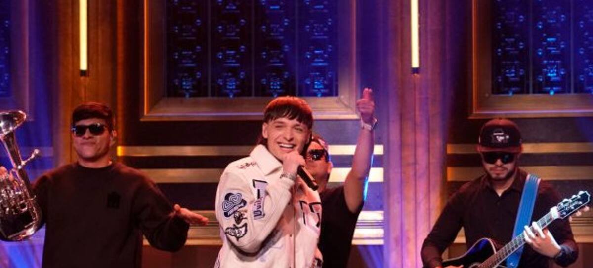THE TONIGHT SHOW STARRING JIMMY FALLON -- Episode 1842 -- Pictured: Musical guest Peso Pluma performs on Friday, April 28, 2023 -- (Photo by: Rosalind O'Connor/NBC via Getty Images)