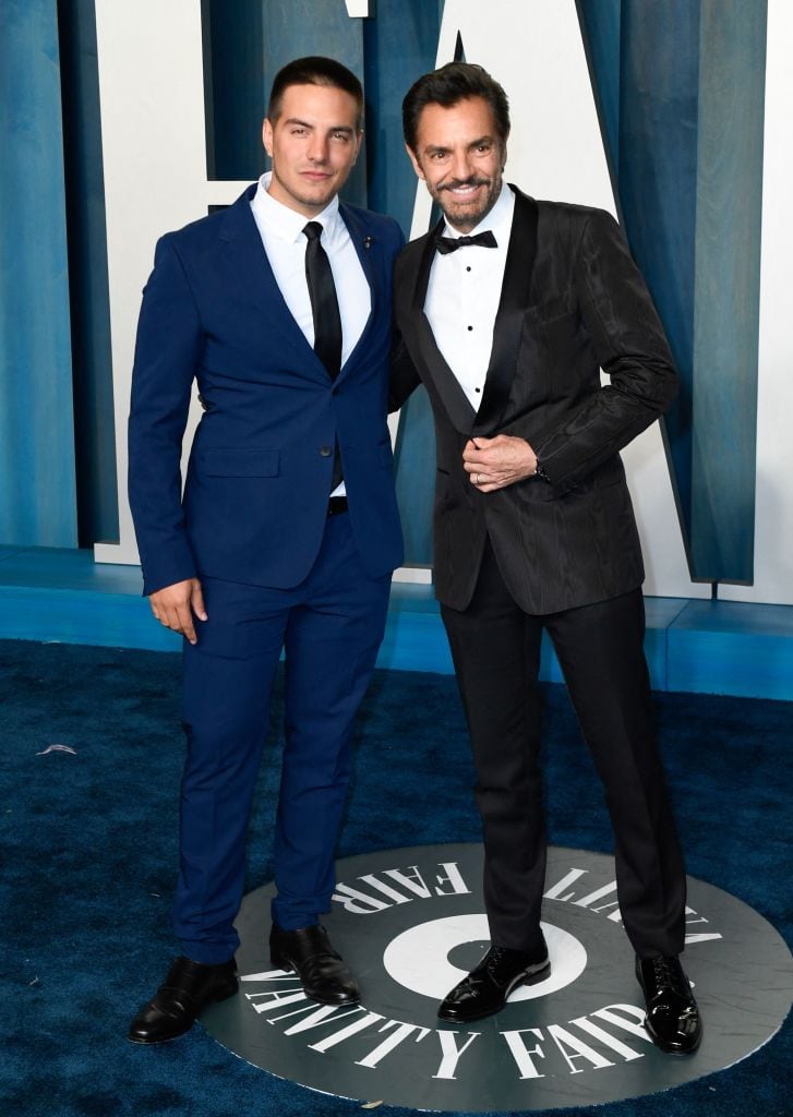 Mexican actor Eugenio Derbez (R) and his son actor Vadhir Derbez (L) at the 2022 Vanity Fair Oscar Party. Patrick T. FALLON/Getty Images. / PATRICK T. FALLON