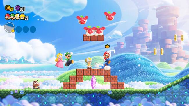 Among the standout features of Super Mario Bros. Wonder is its multiplayer mode, accommodating up to 4 players simultaneously. With a plethora of character choices, including Mario, Luigi, Peach, Daisy, Blue Toad, Yellow Toad, Toadette, Yoshi, Red Yoshi, Yellow Yoshi, Light Blue Yoshi, and Caco Gazapo, the multiplayer experience promises variety and excitement. It’s worth highlighting that both Yoshi and Gazapo are particularly beginner-friendly, as they are impervious to damage.