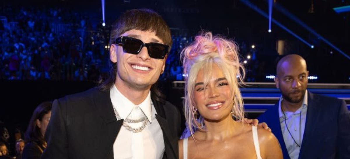 Peso Pluma and Karol G at the Billboard Latin Music Awards 2023 held at Watsco Center on October 5, 2023 in Coral Gables, Florida. (Photo by Christopher Polk/Billboard via Getty Images)