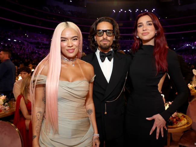 Karol G, Maluma and Dua Lipa attend the 66th GRAMMY Awards at Crypto.com Arena on February 04, 2024 in Los Angeles, California. Kevin Mazur/Getty Images for The Recording Academy / Kevin Mazur