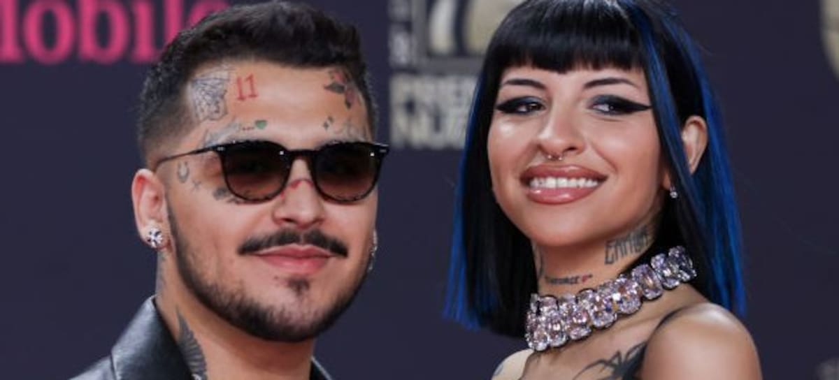 MIAMI, FLORIDA - FEBRUARY 23: Christian Nodal and Julieta Emilia Cazzuchelli attend the 35th Premio Lo Nuestro at Miami-Dade Arena on February 23, 2023 in Miami, Florida. (Photo by Mireya Acierto/Getty Images)