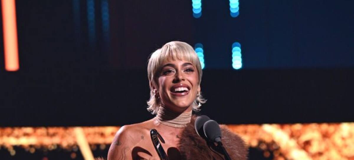 MIAMI, FLORIDA - FEBRUARY 22: Tini speaks onstage during Univision's 36th Premio Lo Nuestro at Kaseya Center on February 22, 2024 in Miami, Florida. (Photo by Ivan Apfel/Getty Images)