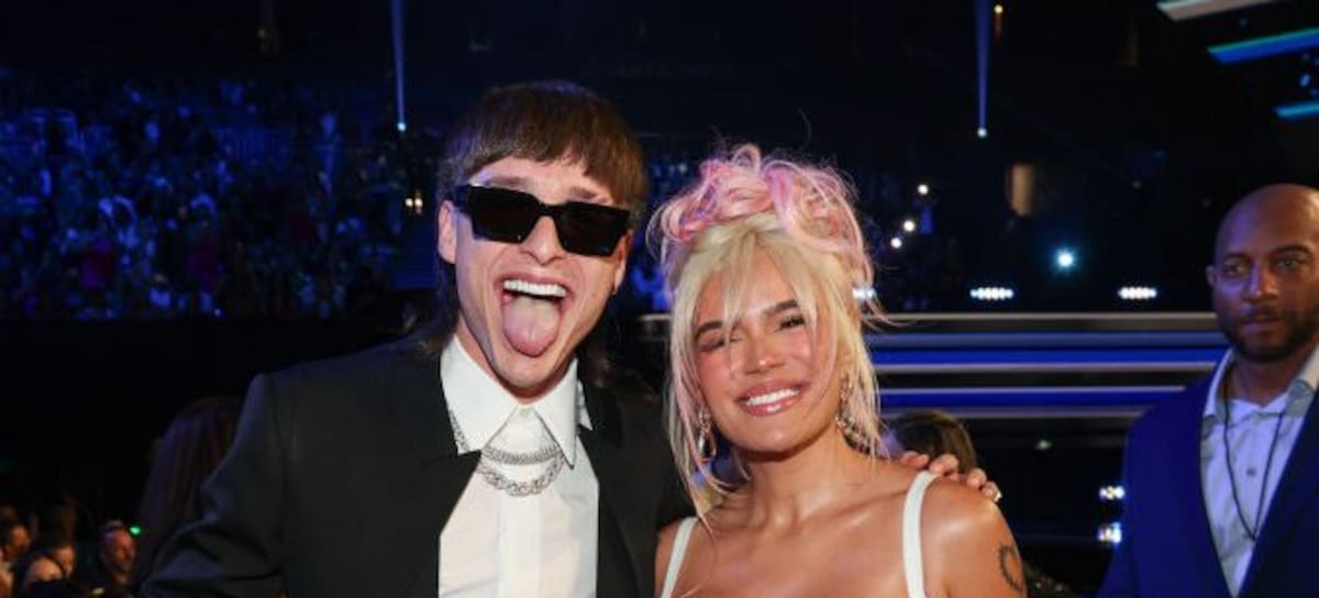Peso Pluma and Karol G at the Billboard Latin Music Awards 2023 held at Watsco Center on October 5, 2023 in Coral Gables, Florida. (Photo by Christopher Polk/Billboard via Getty Images)