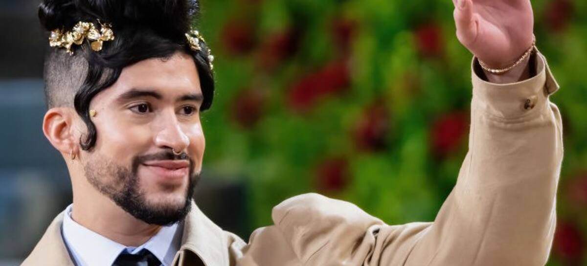 NEW YORK, NEW YORK - MAY 02: Rapper Bad Bunny arrives to The 2022 Met Gala Celebrating "In America: An Anthology of Fashion" at The Metropolitan Museum of Art on May 02, 2022 in New York City. (Photo by Gilbert Carrasquillo/GC Images)