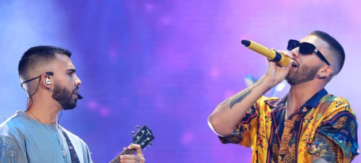 MIAMI, FLORIDA - OCTOBER 15: Julián Turizo (L) and Manuel Turizo perform onstage at the iHeartRadio Fiesta Latina '22 show, presented by the JUVÉDERM collection of fillers, at FTX Arena on October 15, 2022 in Miami, Florida. (Photo by Alexander Tamargo/Getty Images for iHeartRadio)