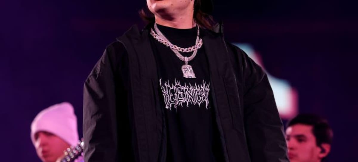 MESA, ARIZONA - DECEMBER 10: Peso Pluma performs onstage during TikTok In The Mix at Sloan Park on December 10, 2023 in Mesa, Arizona. (Photo by Rich Fury/Getty Images for TikTok)