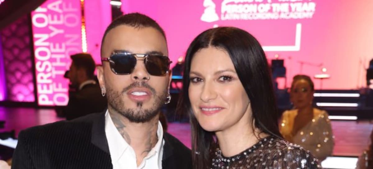 SEVILLE, SPAIN - NOVEMBER 15: (L-R) Rauw Alejandro and Laura Pausini attend the Latin Recording Academy Person of The Year Honoring Laura Pausini at FIBES Conference and Exhibition Centre on November 15, 2023 in Seville, Spain. (Photo by John Parra/Getty Images for Latin Recording Academy)