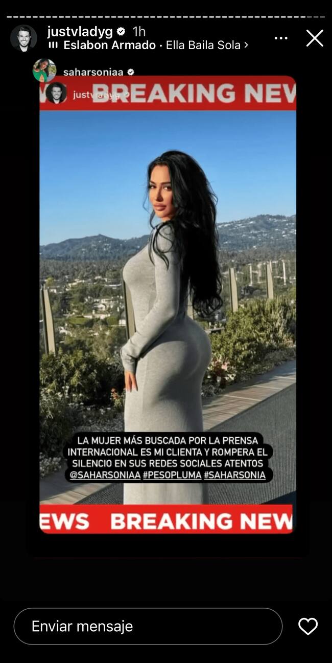 But that’s not all; just a few hours ago, Sahar Sonia reposted a story from a user called ‘Vladimir Gomez,’ referring to her as his ‘client’. The story features Sahar with the text “the most sought-after woman by the international press is my client and will break her silence on her social media, stay tuned @saharsoniaa #pesopluma #saharsonia”. What’s also interesting is that the background music is precisely the song that catapulted Hassan to international fame, «Ella Baila Sola».