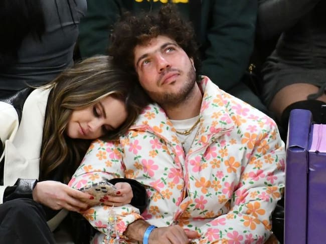 LOS ANGELES, CALIFORNIA - JANUARY 03: Selena Gomez and Benny Blanco attend a basketball game between the Los Angeles Lakers and the Miami Heat at Crypto.com Arena on January 03, 2024 in Los Angeles, California. NOTE TO USER: User expressly acknowledges and agrees that, by downloading and or using this photograph, User is consenting to the terms and conditions of the Getty Images License Agreement. (Photo by Allen Berezovsky/Getty Images)