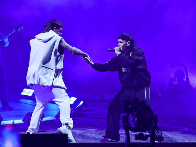 Junior H and Peso Pluma perform at the Coachella Stage during the 2024 Coachella Valley Music and Arts Festival at Empire Polo Club on April 12, 2024 in Indio, California. Arturo Holmes/Getty Images for Coachella / Arturo Holmes