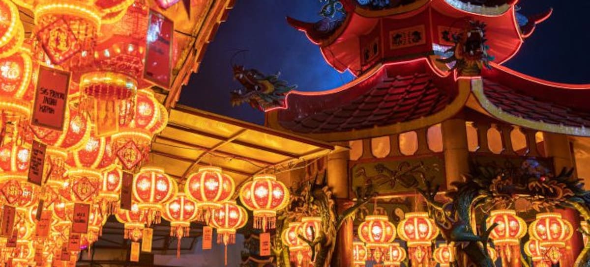 People gather on the eve of Lunar New Year at the Hok Tek Tjeng Sin Temple in Jakarta, Indonesia, on January 28, 2025. Chinese New Year, also known as Lunar New Year or Spring Festival, is China's most important festival. Chinese New Year 2025 falls on Wednesday, January 29, 2025, beginning a year of the Snake. (Photo by Afriadi Hikmal/NurPhoto via Getty Images)