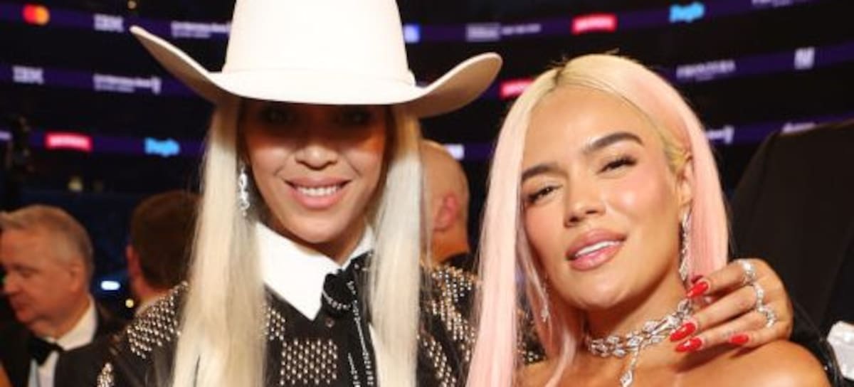 Karol G y Beyoncé en los Grammys 2024. Kevin Mazur/Getty Images for The Recording Academy)