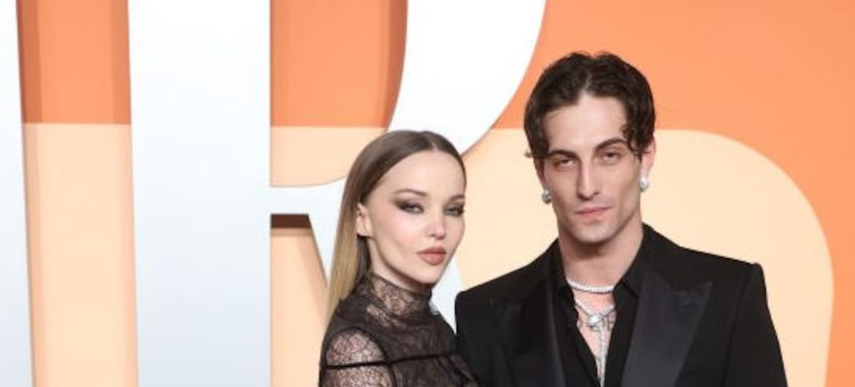 BEVERLY HILLS, CALIFORNIA - MARCH 02: Dove Cameron and Damiano David attend the 2025 Vanity Fair Oscar Party Hosted By Radhika Jones at Wallis Annenberg Center for the Performing Arts on March 02, 2025 in Beverly Hills, California. (Photo by Daniele Venturelli/Getty Images)