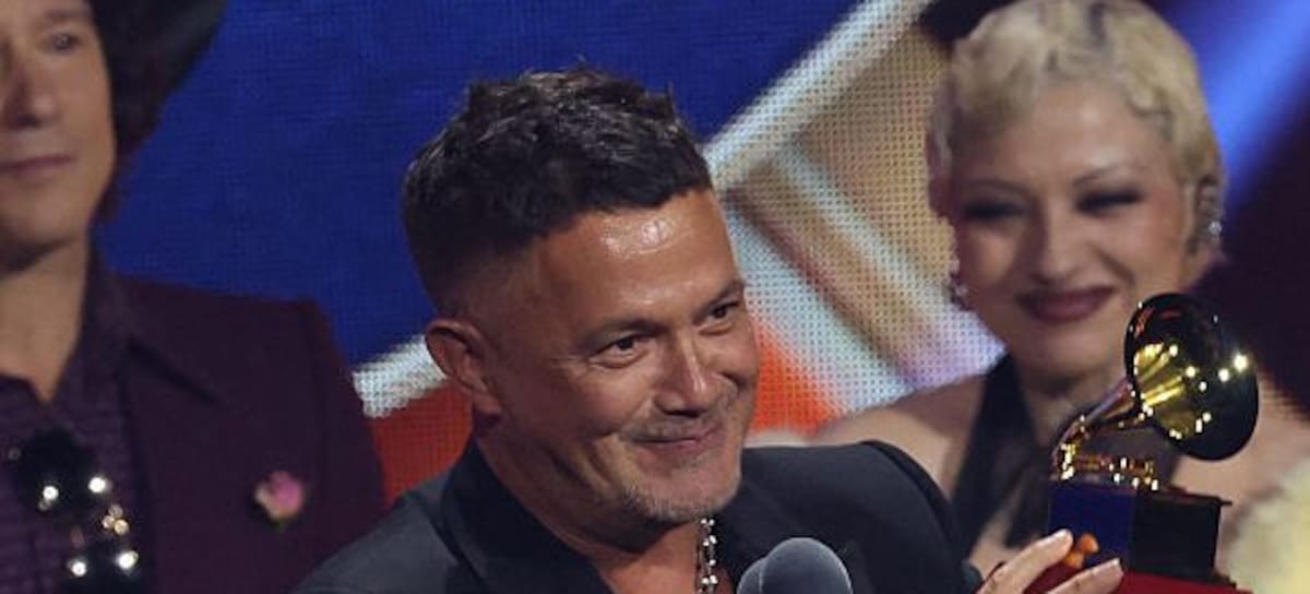 El cantautor español Alejandro Sanz acepta el premio a Grabación del Año por “Palmeras En El Jardín” durante la 26.ª Entrega Anual de los Latin Grammy en el MGM Grand Garden Arena en Las Vegas, Nevada, el 13 de noviembre de 2025. VALERIE MACON / AFP) / USO EDITORIAL RESTRINGIDO