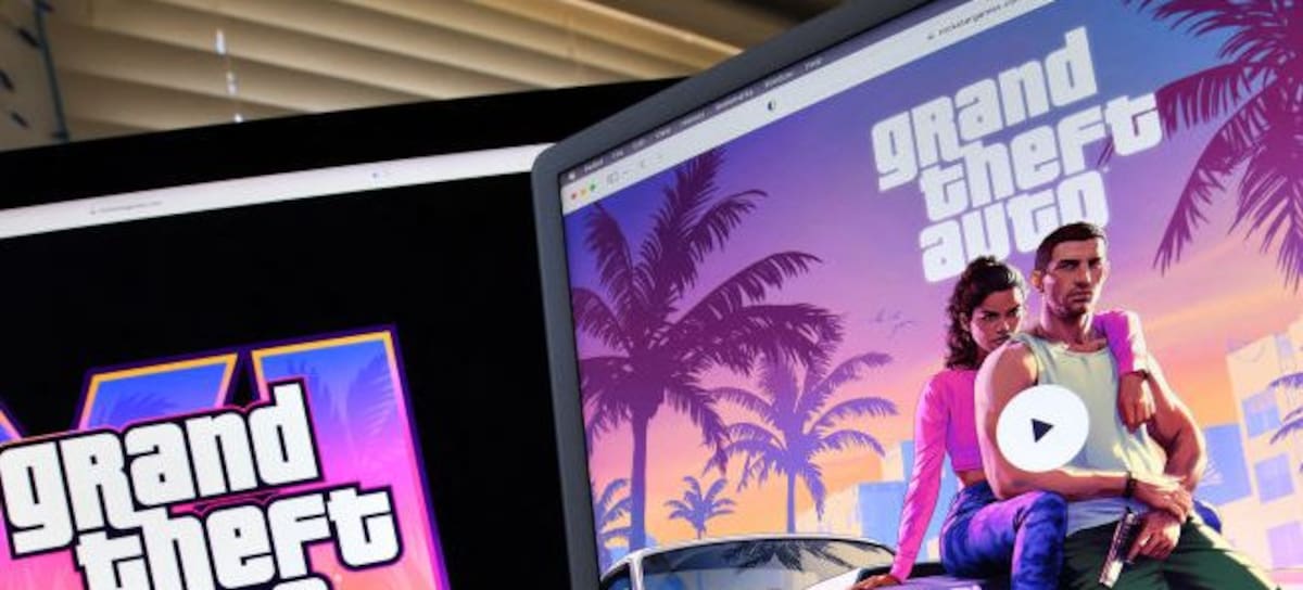 This illustration photo created in Los Angeles, California, on December 5, 2023, shows Rockstar Games' Grand Theft Auto 6 trailer played on computer screens. The first trailer for "Grand Theft Auto VI" was officially released ahead of schedule December 4, 2023 due to a leak, touting a 2025 release for the next chapter of the massively successful video game franchise. (Photo by Chris DELMAS / AFP) (Photo by CHRIS DELMAS/AFP via Getty Images)