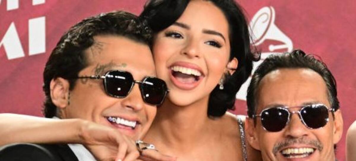 (From L) Mexican singer-songwriter Christian Nodal, US-Mexican singer Angela Aguilar, US singer Marc Anthony and his wife Paraguayan model Nadia Ferreira attend the 25th Annual Latin Grammy Awards at the Kaseya Center in Miami, Florida, on November 14, 2024. (Photo by Giorgio VIERA / AFP) (Photo by GIORGIO VIERA/AFP via Getty Images)