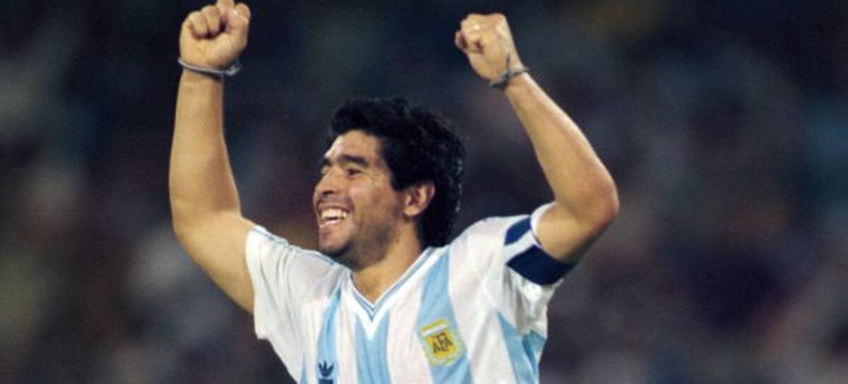 Diego Maradona of Argentina celebrates during the semi final match between Argentina and Italy in the 1990 FIFA World Cup at the Stadio San Paolo in Naples, Italy on 3rd July 1990. (Photo by David Cannon/Allsport/Getty Images)