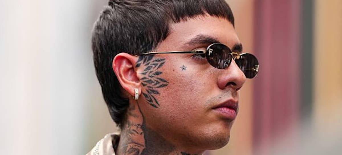 PARIS, FRANCE - JUNE 26: Natanael Cano wears dark brown Fendi sunglasses, gold chain necklace, white tank top, dark brown light brown zebra pattern beaded embroidered zipped oversized Bluemarble jacket, outside Bluemarble, during the Paris Fashion week Men's Spring/Summer 2026 on June 26, 2025 in Paris, Franco (Photo by Edward Berthelot/Getty Images)