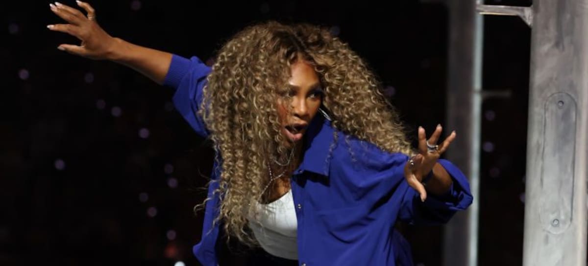 NEW ORLEANS, LOUISIANA - FEBRUARY 09: Serena Williams performs during the Apple Music Super Bowl LIX Halftime Show at Caesars Superdome on February 09, 2025 in New Orleans, Louisiana. (Photo by Kevin Mazur/Getty Images for Roc Nation)