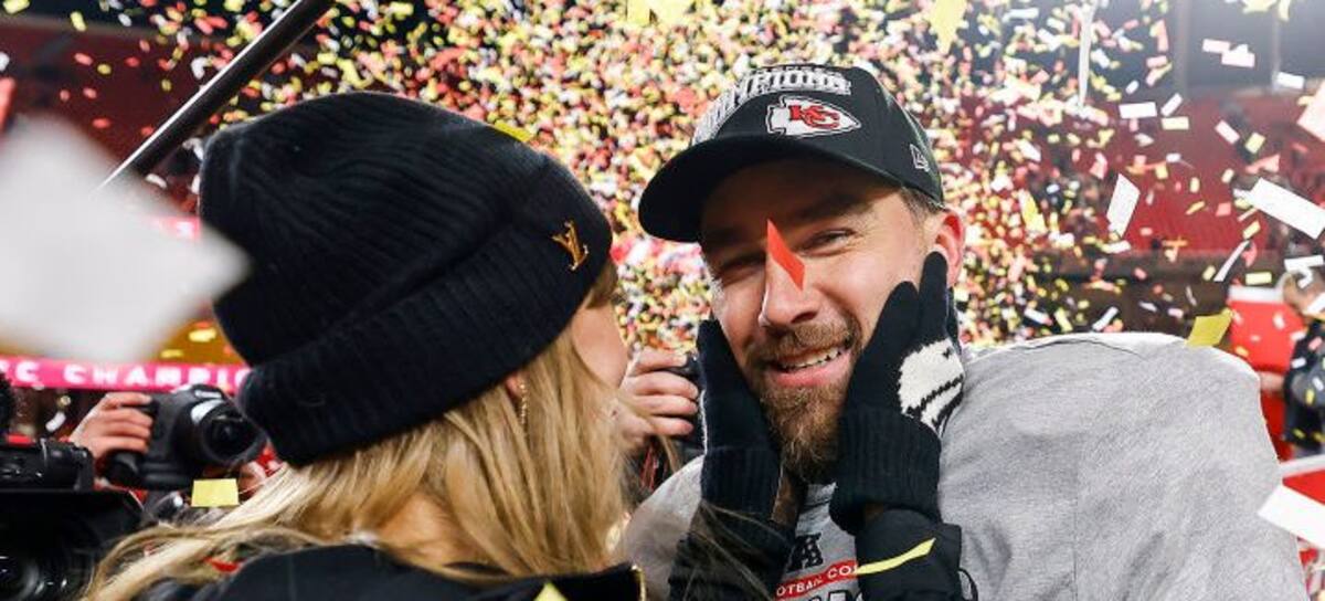 Taylor Swift and Travis Kelce’s Iconic Kiss Celebrating Chiefs Making Super Bowl
