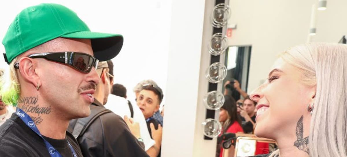 Feid and Young Miko at Billboard Latin Music Week held at Faena Forum on October 3, 2023 in Miami Beach, Florida. (Photo by Christopher Polk/Billboard via Getty Images)