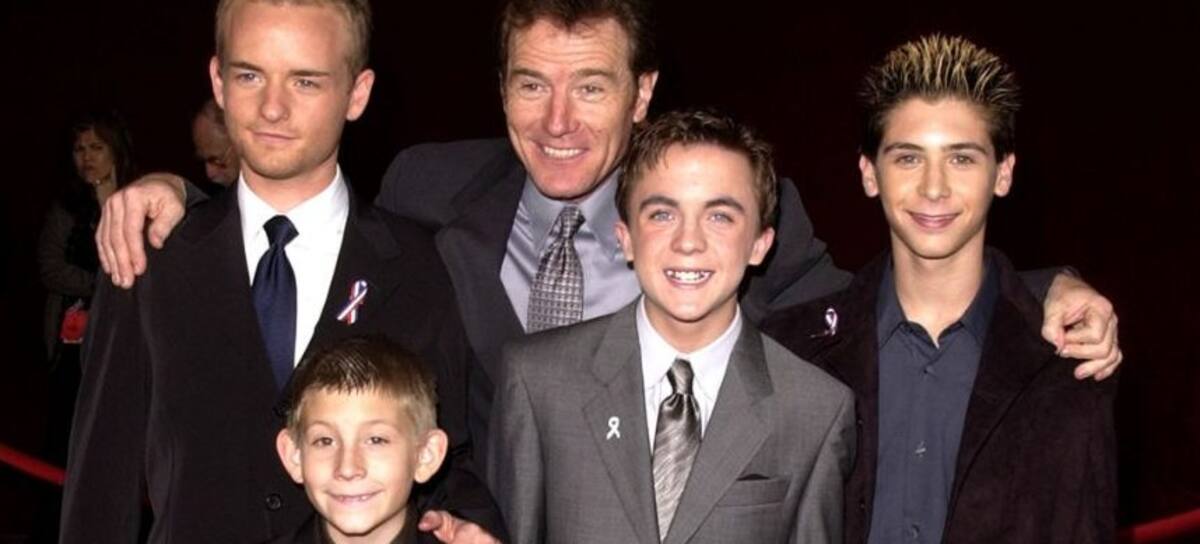 The cast of <em>Malcolm In The Middle</em> give a thumbs up sign at the 53rd Annual Primetime Emmy Awards at the Shubert Theater November 4, 2001 in Los Angeles, CA. (L-R) Actors Christopher Masterson, Frankie Muniz, Erik Per Sullivan (front center), Bryan Cranston and Justin Berfield. (Vince Bucci/Getty Images)