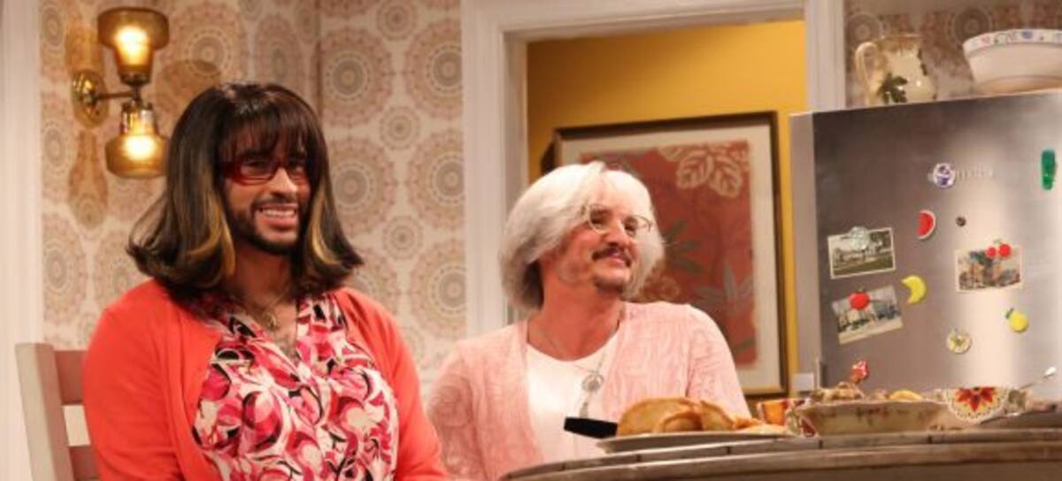 SATURDAY NIGHT LIVE -- "Bad Bunny" Episode 1846 -- Pictured: (l-r) Host Bad Bunny as Tia, Pedro Pascal as Mama, Marcello Hernandez, and Chloe Troast during the "Protective Mom 2" sketch on Saturday, October 21, 2023 -- (Photo by: Will Heath/NBC via Getty Images)