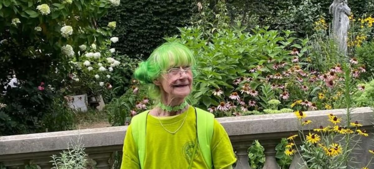 Elizabeth has worn green every single day for over two decades. We’re not talking muted olive or forest tones. Think lime, electric, and neon green—clothing, shoes, hair, glasses, lipstick, and even her kitchen appliances. Her look is a full-on commitment to color, and it’s made her a local legend in her Carroll Gardens neighborhood.