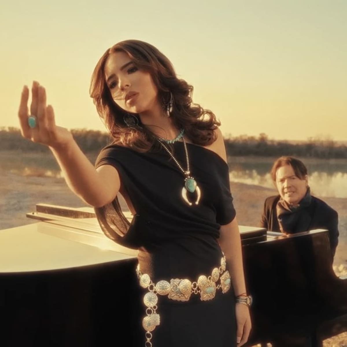 In the video, we see the singer sharing a romantic moment with her husband, Christian Nodal